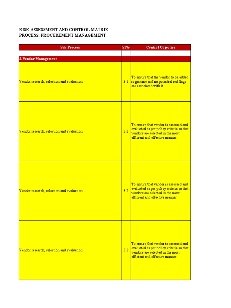 Vendor research, selection and evaluation 3.3 assigned as per the criteria defined in