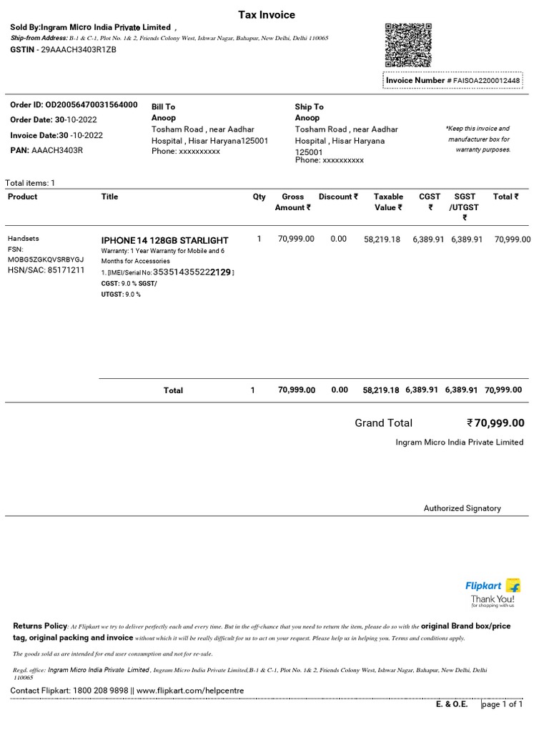 PAN: AAACH3403R Phone: xxxxxxxxxx warranty purposes.