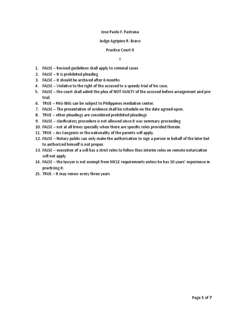 5. FALSE – the court shall admit the plea of NOT GUILTY of the accused before arraignment and pre-