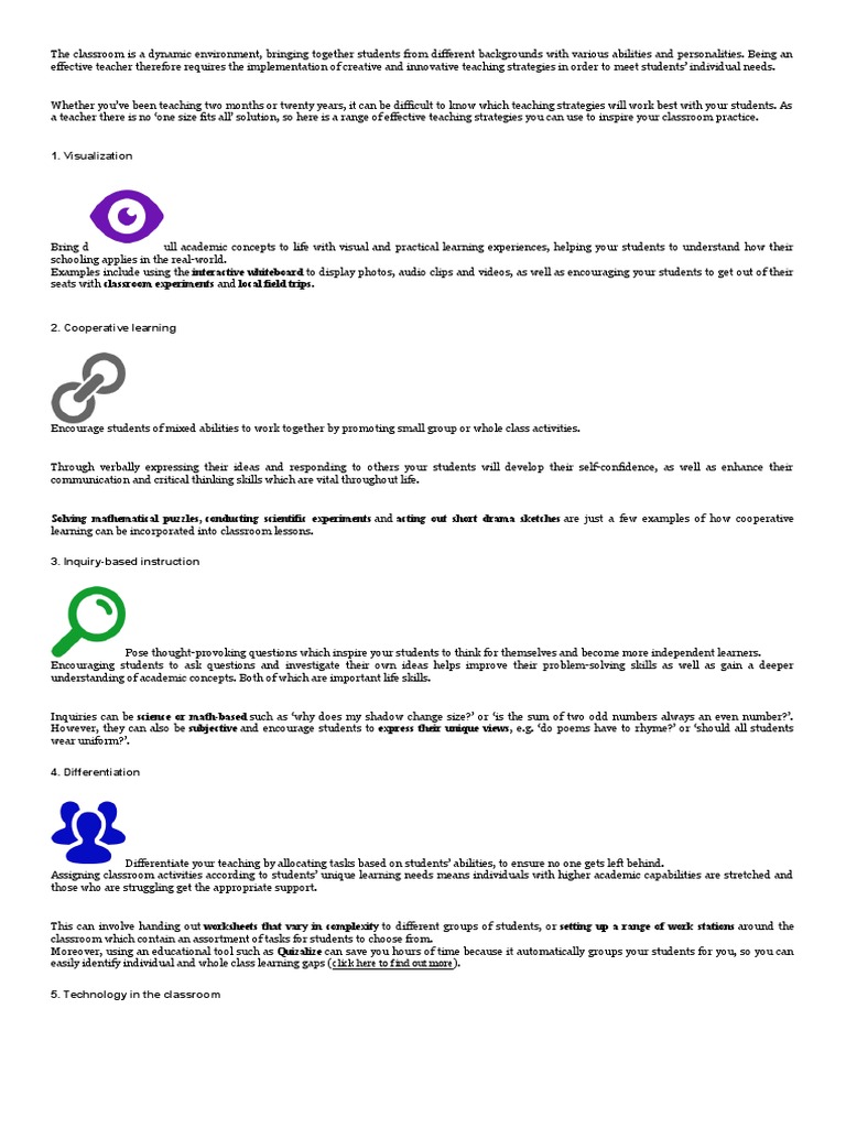 a teacher there is no ‘one size fits all’ solution, so here is a range of effective teaching strategies you can use to inspire your classroom practice.
