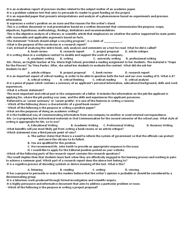 A. critical writing B. critical thinking C. critical reading D. critical analysis