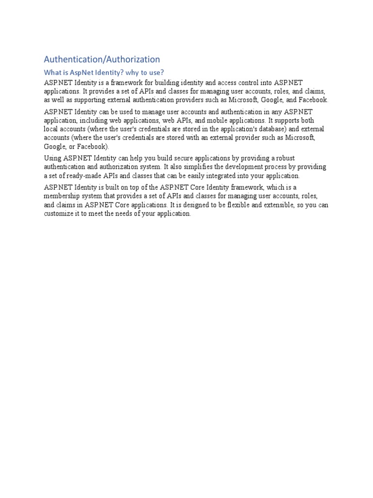 ASP.NET Identity: A membership system that provides a set of APIs and classes for managing user