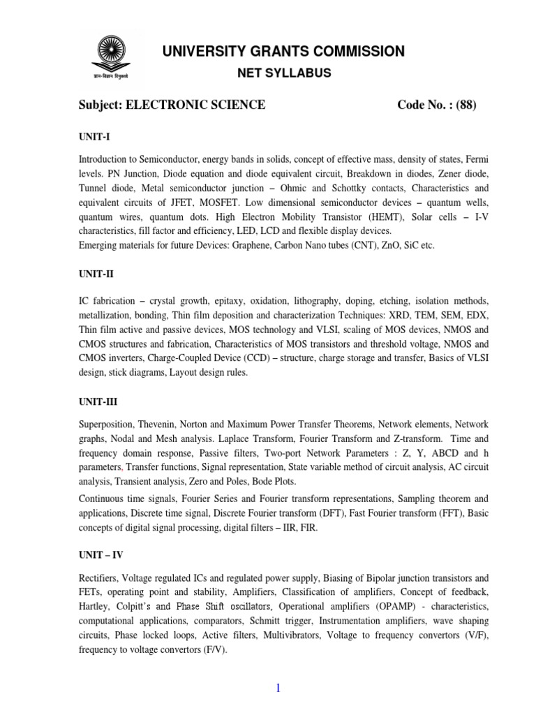 Subject: ELECTRONIC SCIENCE Code No. : (88)