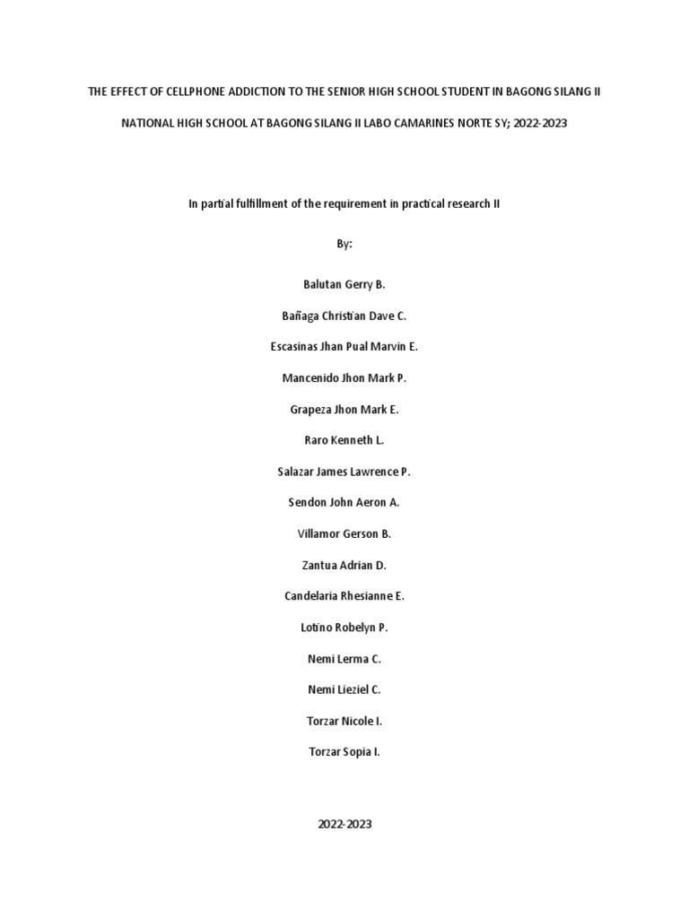 THE EFFECT OF CELLPHONE ADDICTION TO THE SENIOR HIGH SCHOOL STUDENT IN BAGONG SILANG II