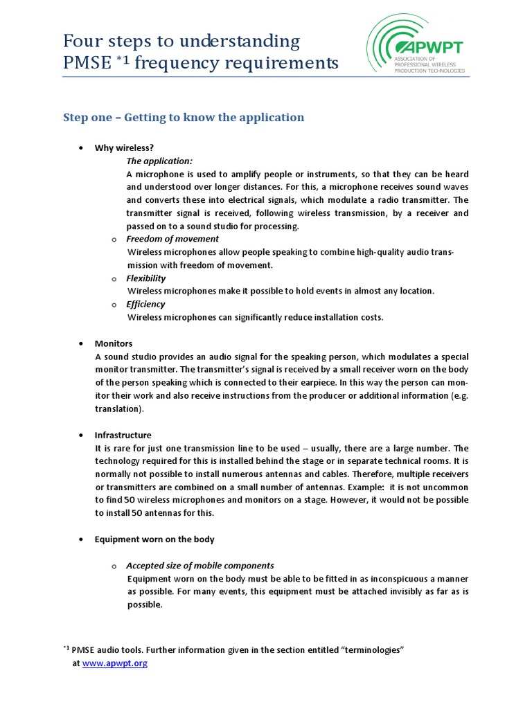 Four Steps to understanding PMSE frequency requirements, APWPT, June 2018
