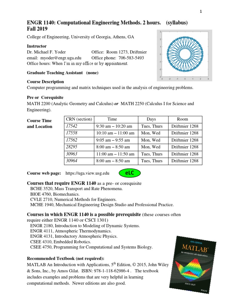 ENGR 1140: Computational Engineering Methods. 2 hours. (syllabus)