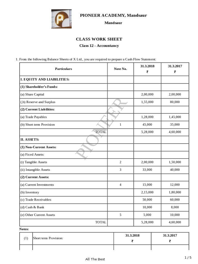 2. From the following Balance Sheets of X Y Ltd. as at 31.3.2018 and 31.3.2017 prepare a Cash-Flow Statement:
