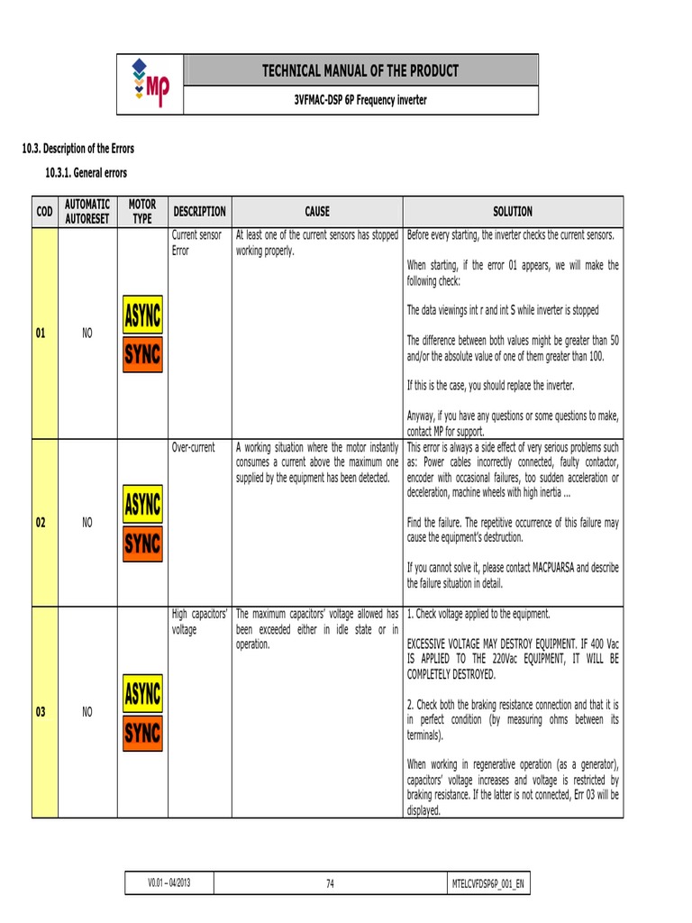 process, the inverter may display both general errors and encoder errors.
