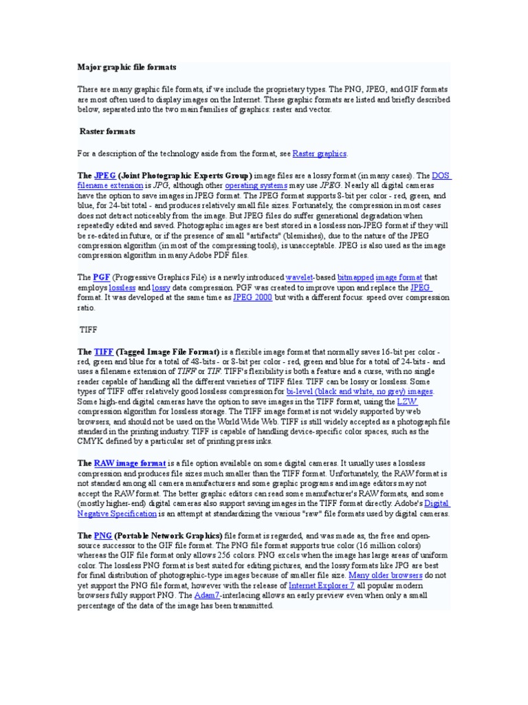 are most often used to display images on the Internet. These graphic formats are listed and briefly described