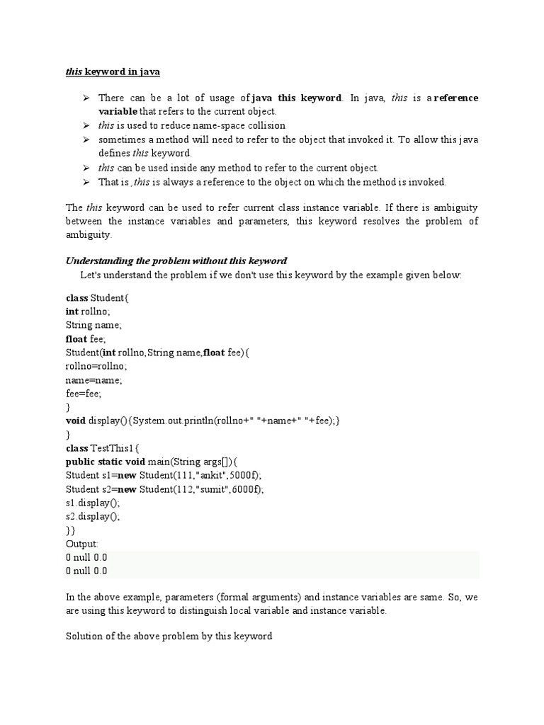 ⮚ sometimes a method will need to refer to the object that invoked it. To allow this java