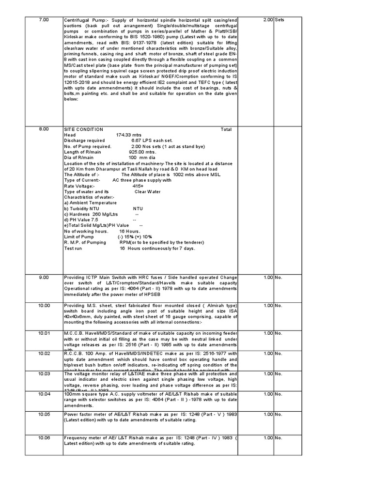 7.00 Centrifugal Pump:- Supply of horizontal spindle horizontal split casing/end 2.