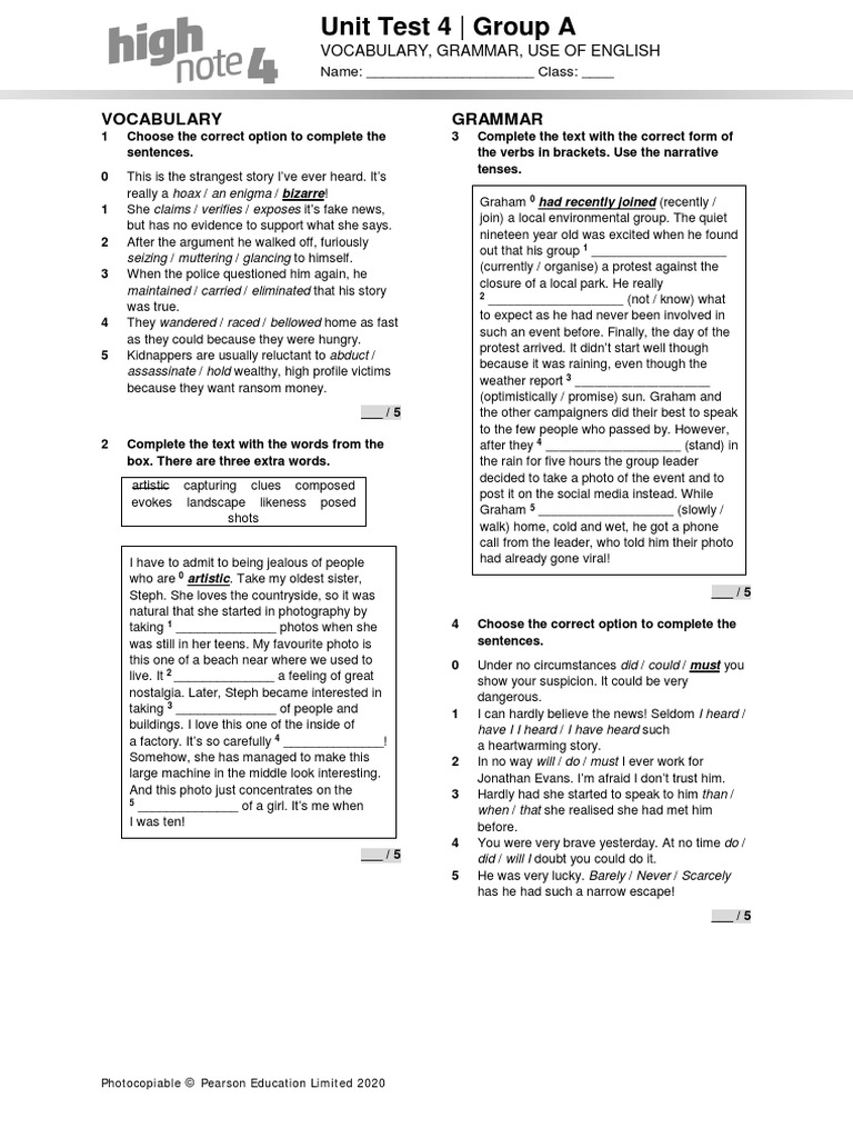 VOCABULARY, GRAMMAR, USE OF ENGLISH