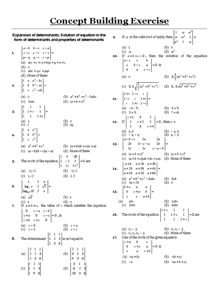 Expansion of determinants, Solution of equation in the 9. If is the cube root of unity, then 2 1 =