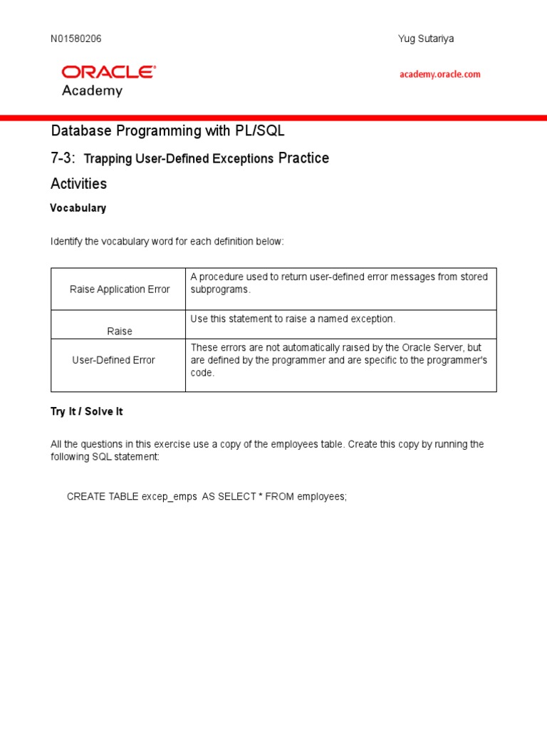 3. Modify your code from question 2 to use RAISE_APPLICATION_ERROR in the executable section