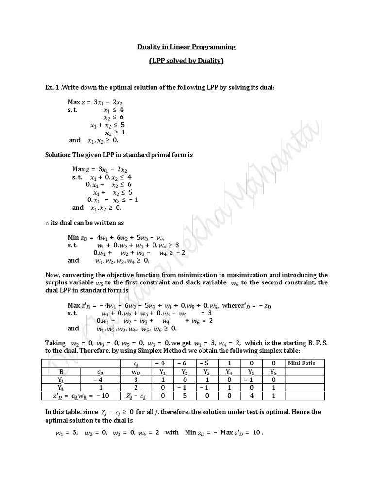 Ex. 1 .Write down the optimal solution of the following LPP by solving its dual: