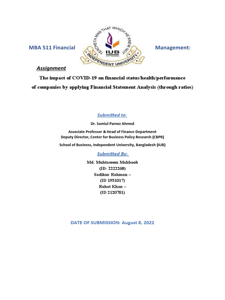 Subject: An Assignment on the analyze the impact of COVID-19 on financial