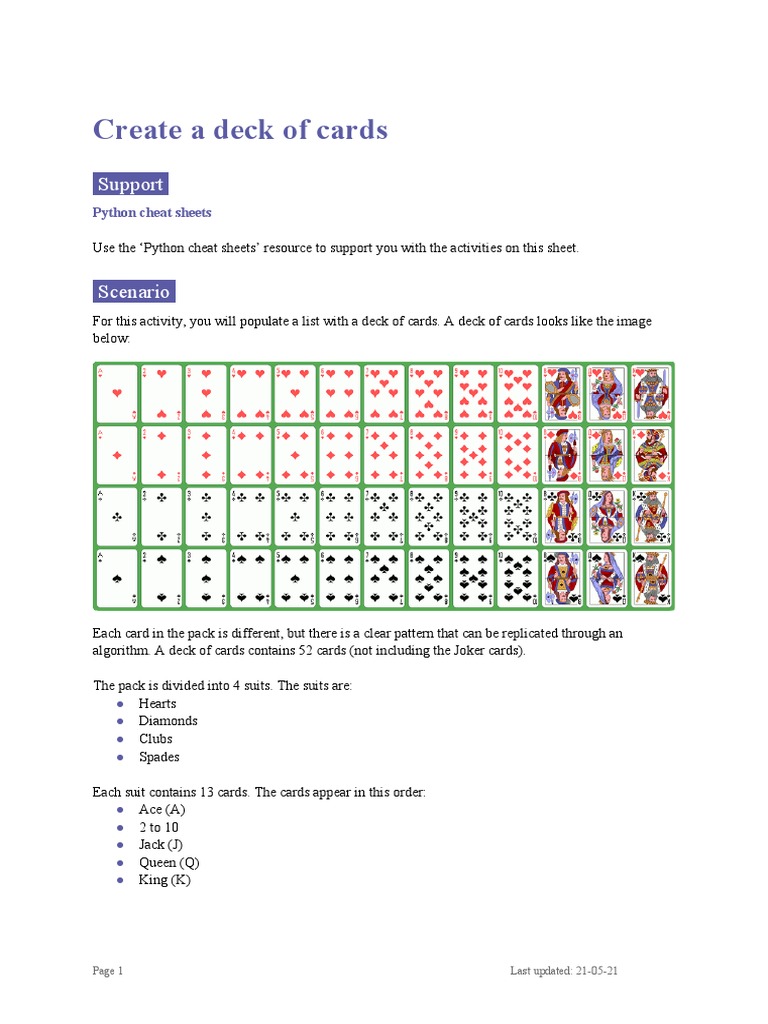 For this activity, you will populate a list with a deck of cards. A deck of cards looks like the image