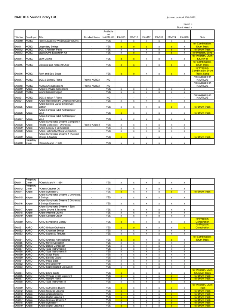 KORG2 KORG KRONOS Sound Pack for NAUTILUS EXs319, EXs320 YES o o o o o o