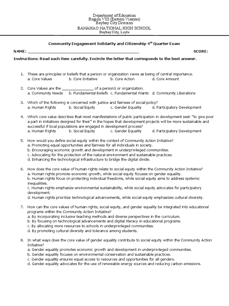 Community Engagement Solidarity and Citizenship 4th Quarter Exam