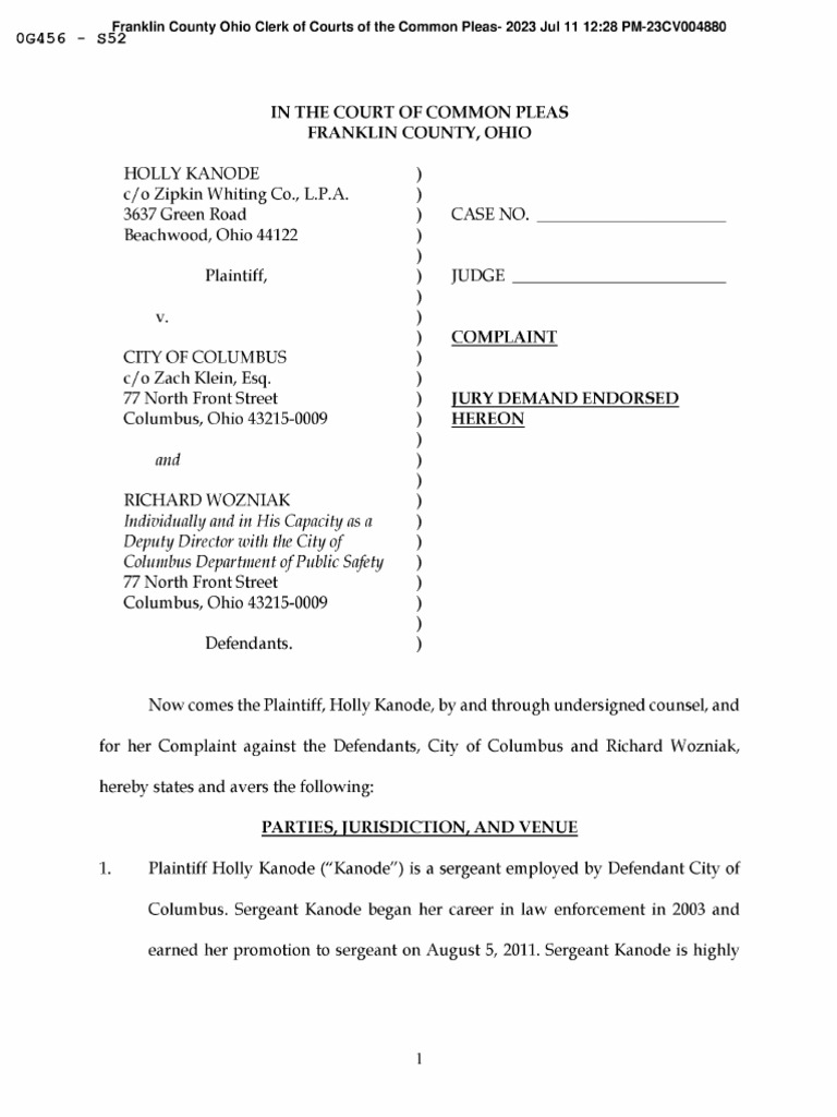 Counsel for Plaintiff Holly KanodeFranklin County Ohio Clerk of Courts of the Common Pleas- 2023 Jul 11 12:28 PM-23CV004880