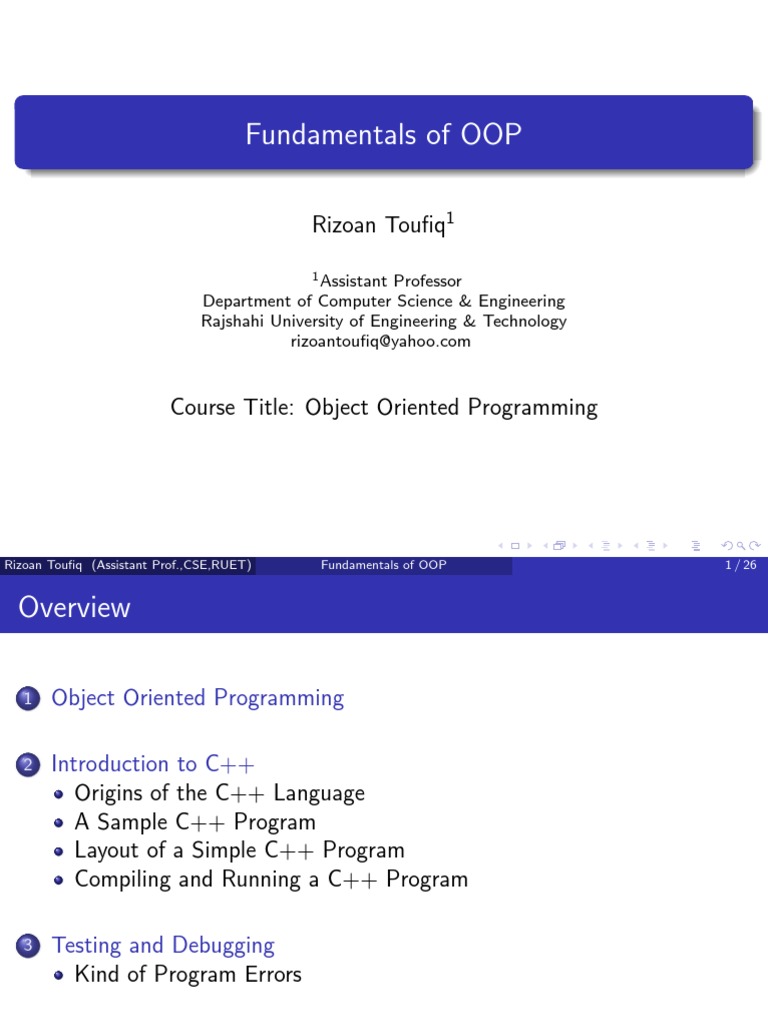 Rizoan Toufiq (Assistant Prof.,CSE,RUET) Fundamentals of OOP 2 / 26