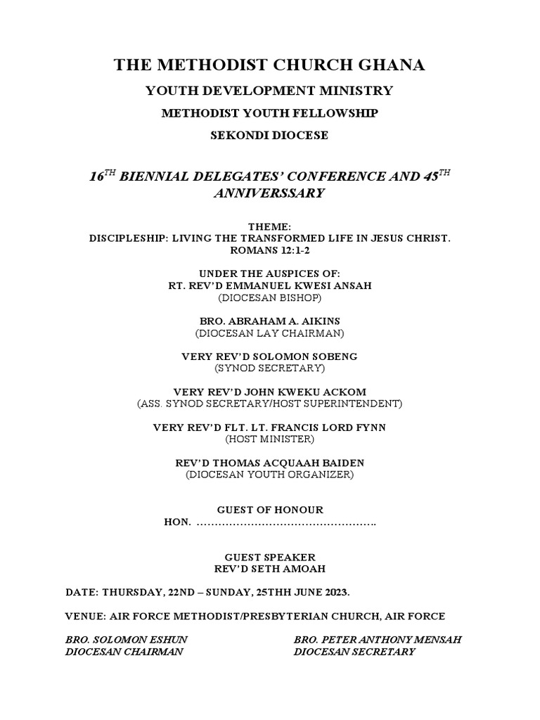 PROGRAMME FOR DIVINE SERVICE 25TH JUNE, 2023
