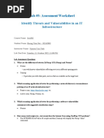 In this lab, students identified risks, threats, and vulnerabilities throughout the seven domains of a