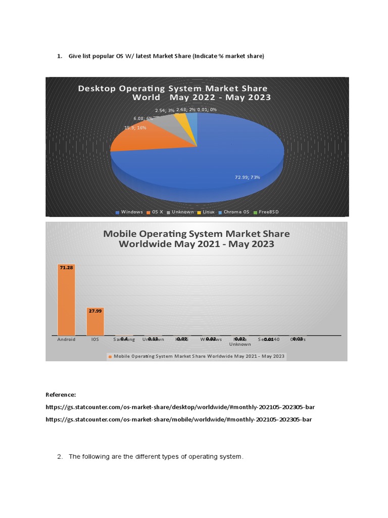 Give list popular OS W/ latest Market Share (Indicate % market share)