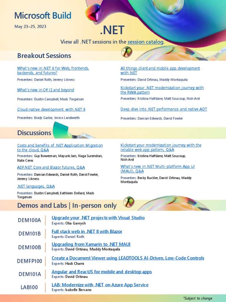 View all .NET sessions in the session catalog.