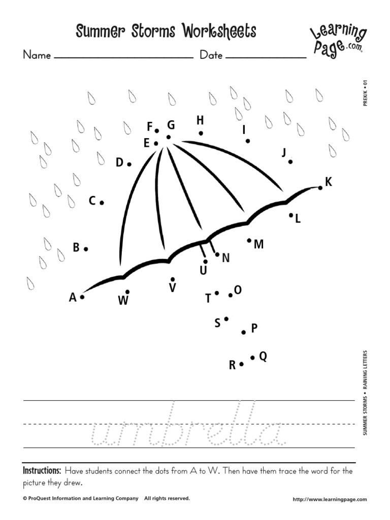 Instructions: Have students draw a line from the cloud with the lowercase letters to the umbrella with