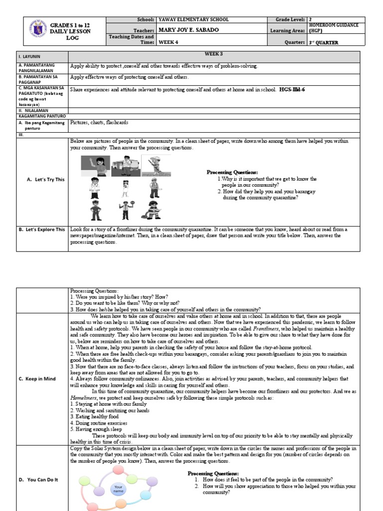 C. MGA KASANAYAN SA Share experiences and attitude relevant to protecting oneself and others at home and in school. HGS-llld-6