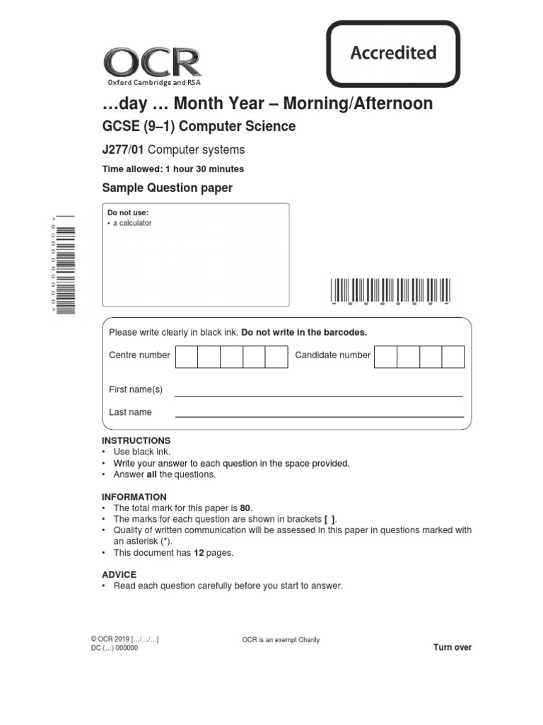 July 2019 2 There have been some changes to the Component 1 sample assessment material (SAM) based on