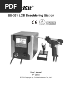 Proceso para desoldar Utilice un modelo de punta de mayor dimetro interior que el pin a desoldar, con el fin de conseguir el mximo de aspiracin y de transmisin trmica. 1 Apoye la punta del desoldador, de forma que el terminal del componente penetre dentro del orificio de la punta. Cuando la soldadura se lice, imprima a la punta del desoldador un movimiento de rotacin que permita desprender de los laterales el terminal del componente. Accione entonces, no antes, el pulsador de la bomba de vaco el tiempo necesario para succionar la soldadura. 2 3