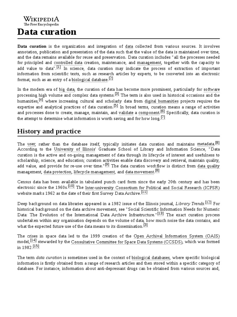 expertise and analytical practices of data curation.[5] In broad terms, curation means a range of activities