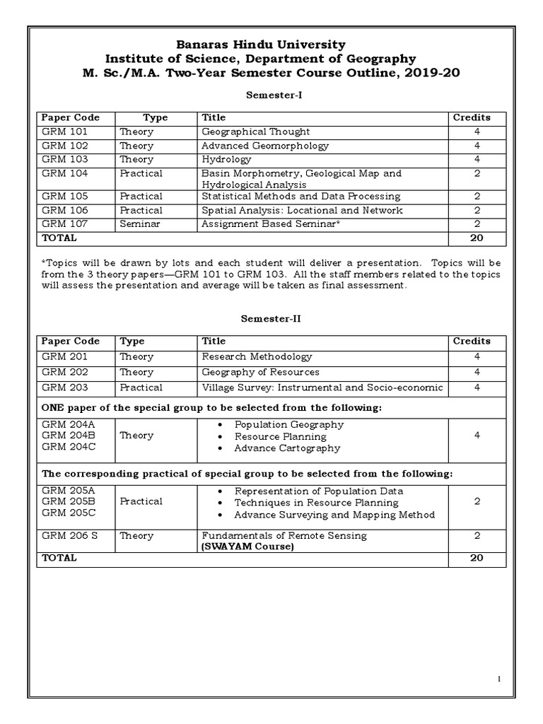 M. Sc./M.A. Two-Year Semester Course Outline, 2019-20