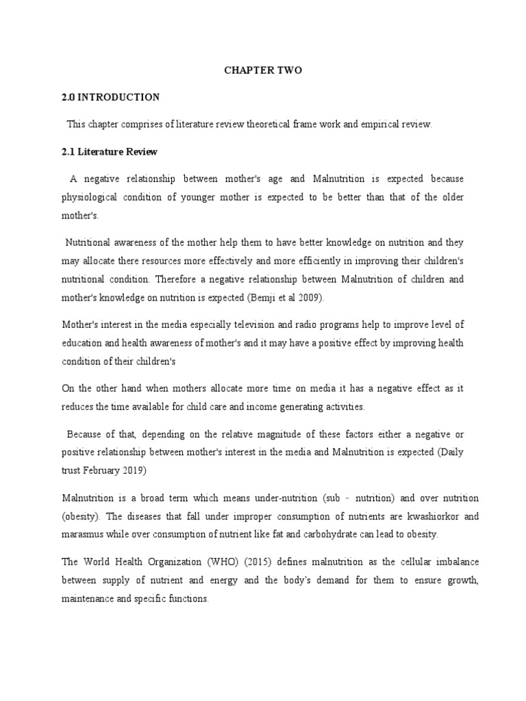presently suffering from malnutrition and the World Health Organization (WHO, 2015) at so affirms