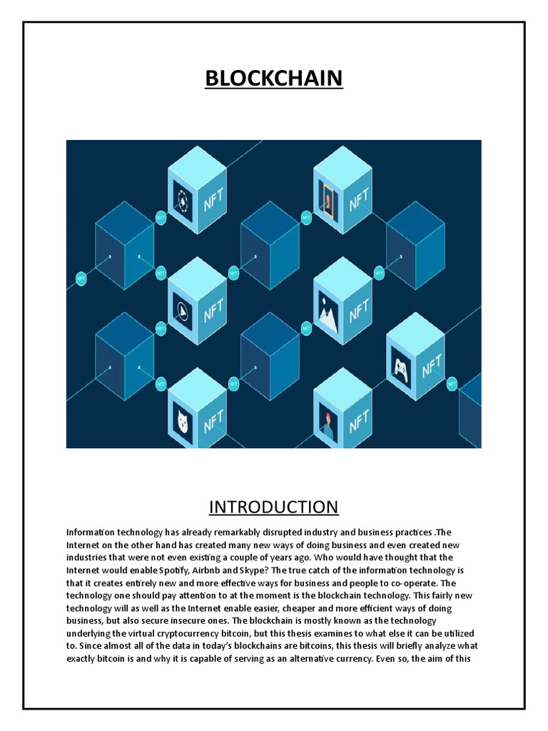 thesis is to emphasize that the technology is not restricted to this use only. In fact, bitcoin has been