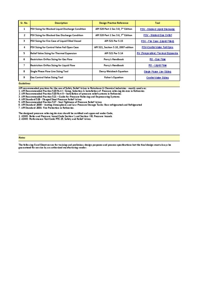 1. API Recommended Practice 520 Part I - Sizing, Selection & Installation of Pressure relieving devices in Refineries.
