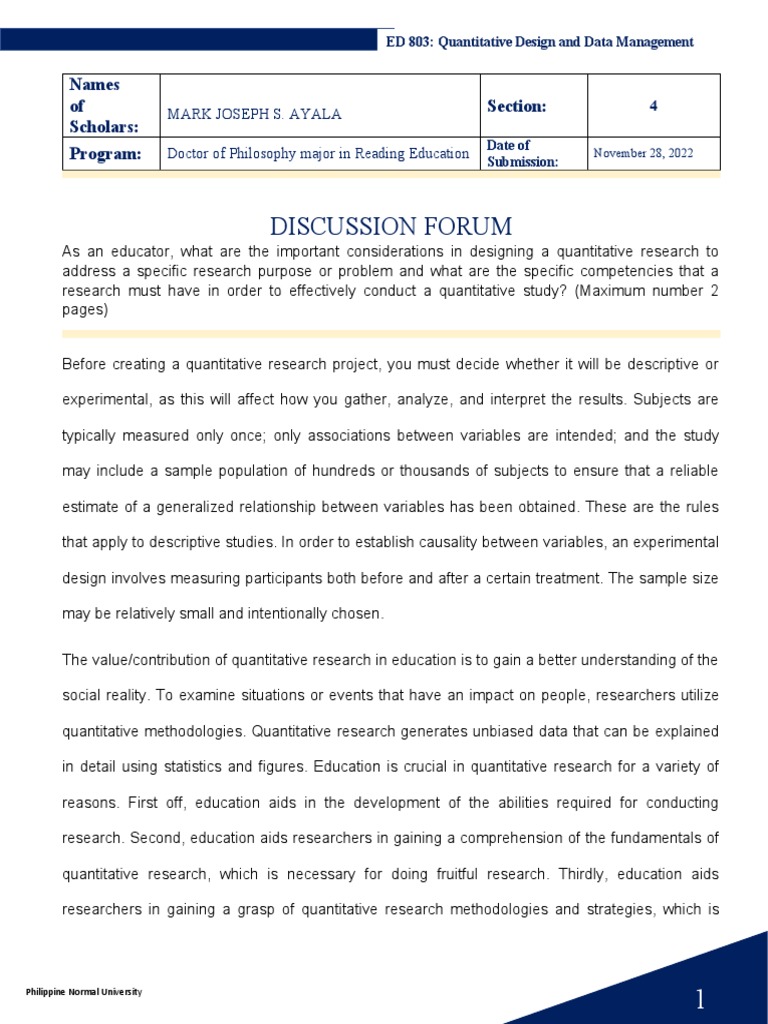 in detail using statistics and figures. Education is crucial in quantitative research for a variety of
