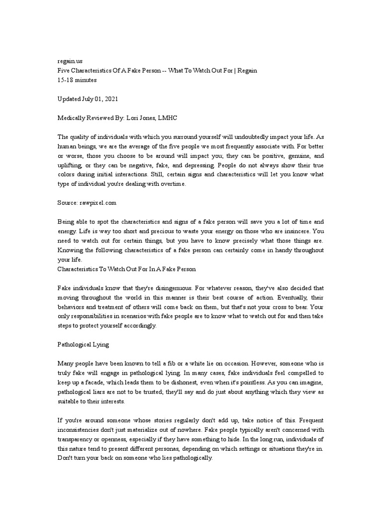 Five Characteristics Of A Fake Person -- What To Watch Out For | Regain