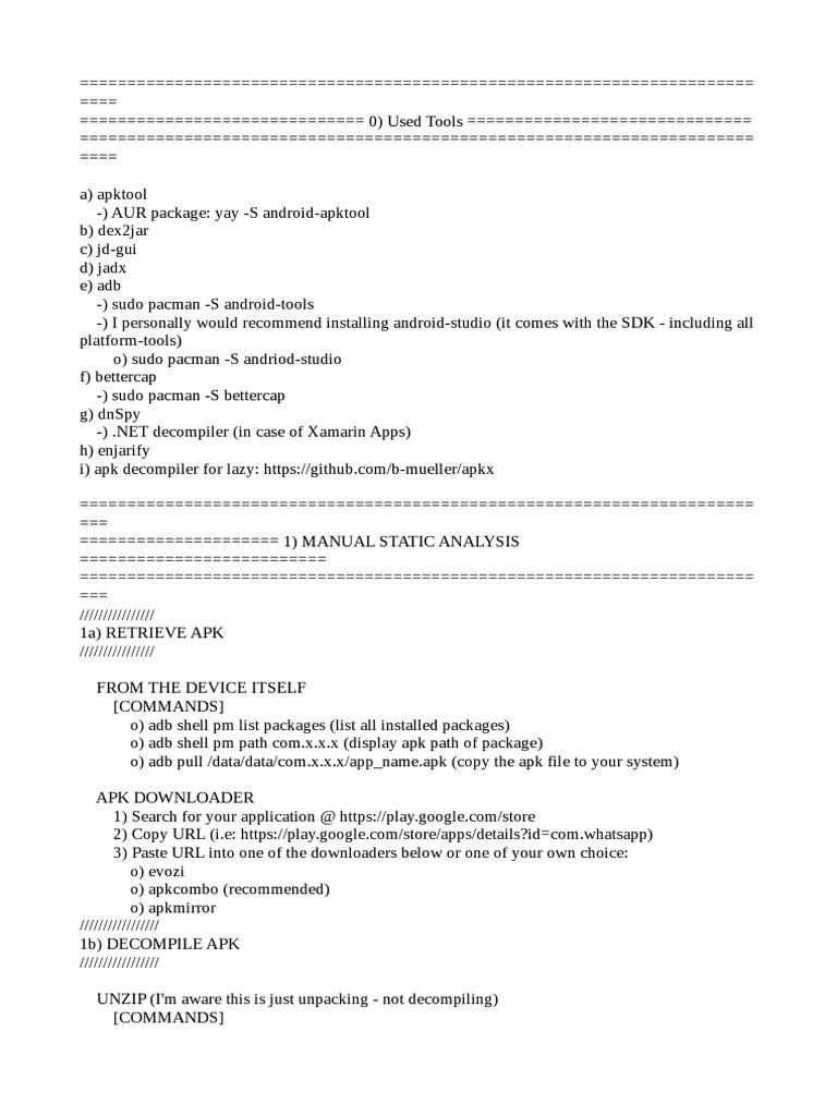o) apktool d path/to/your/app_name.apk (decompiles .dex files to .smali)