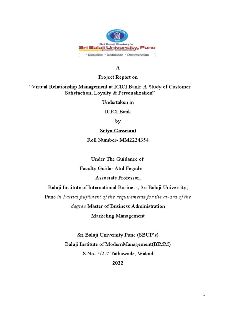 this project entitled “Virtual Relationship Management at ICICI Bank: A