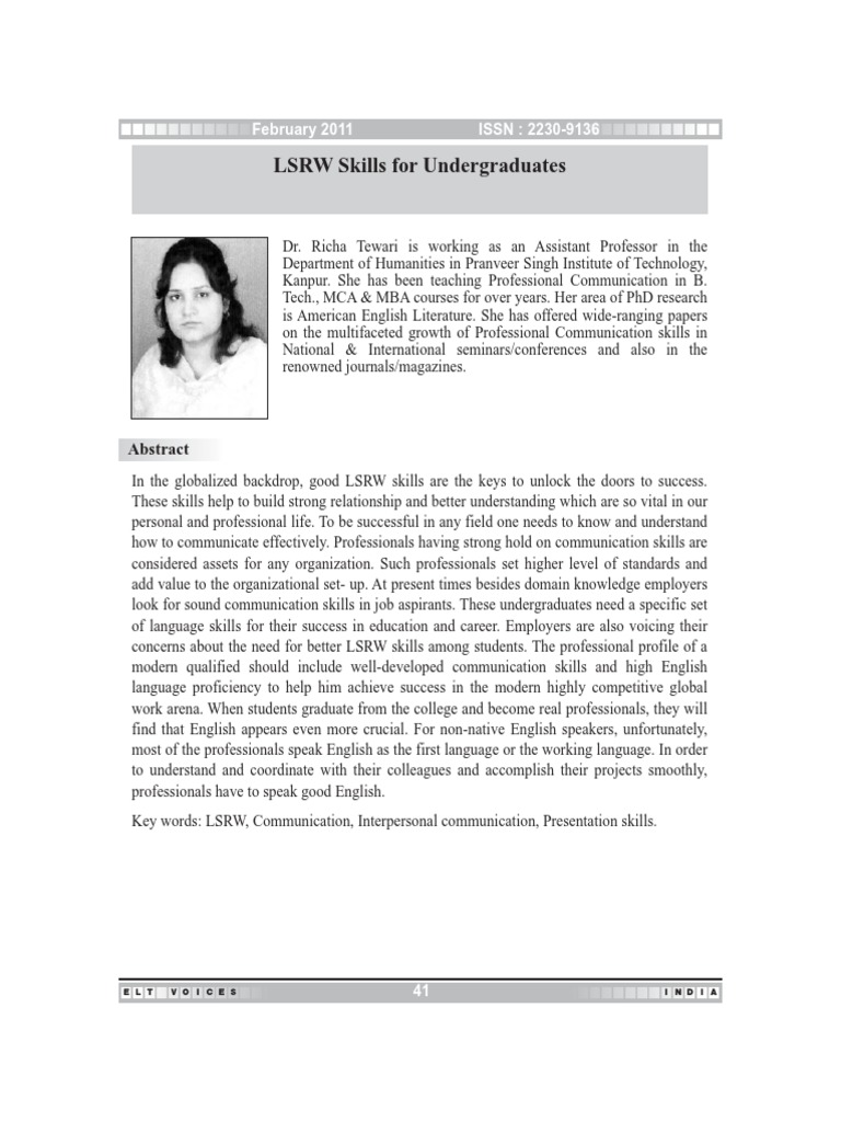 concerns about the need for better LSRW skills among students. The professional profile of a