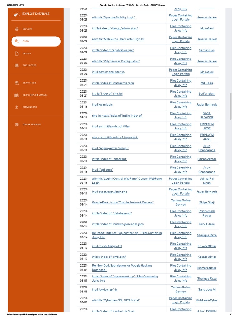 06/07/2023 16:35 Google Hacking Database (GHDB) - Google Dorks, OSINT, Recon