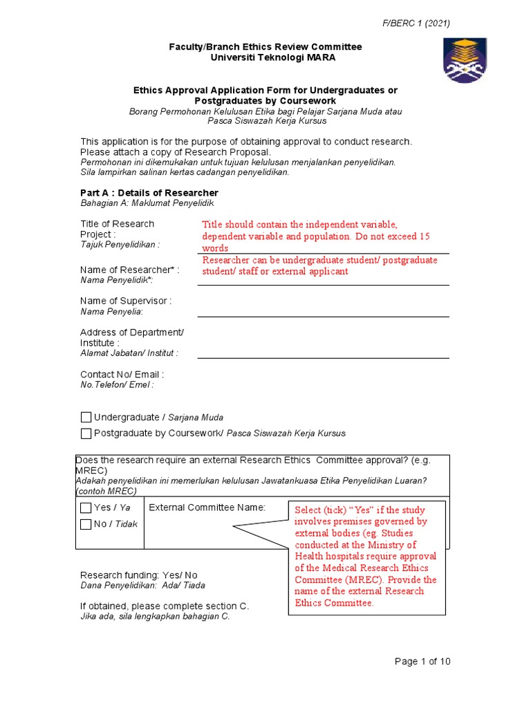 Borang Permohonan Kelulusan Etika bagi Pelajar Sarjana Muda atau