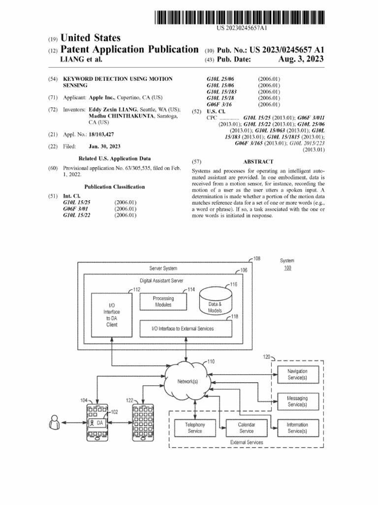 An apple patent that could use motion data to match reference data for a set of one or more words.