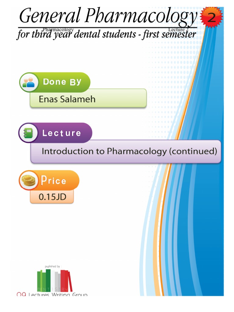 Lecture 2, Introduction To Pharmacology Continued. (Script)