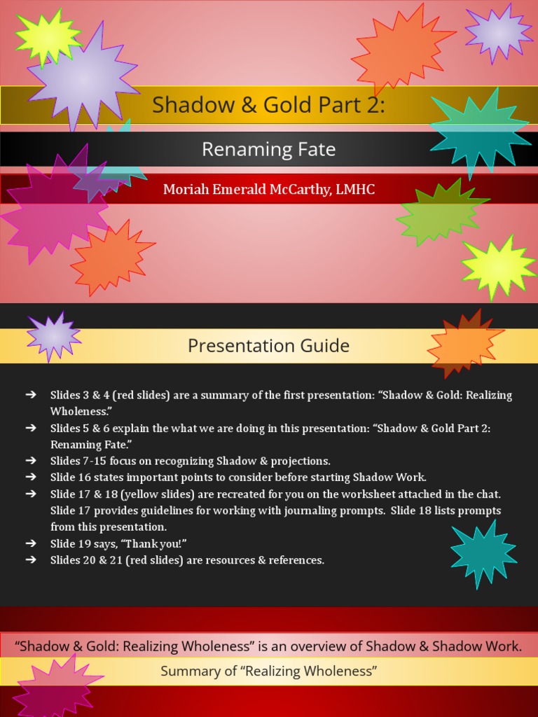 “Shadow & Gold: Realizing Wholeness” is an overview of Shadow & Shadow Work.