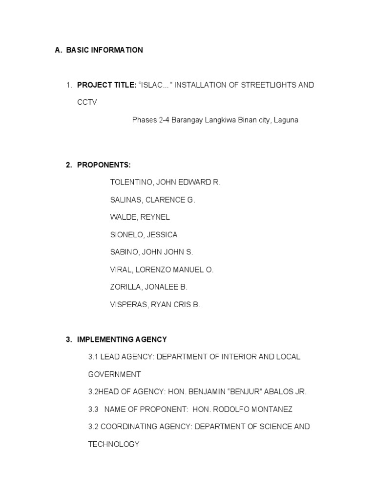 1. PROJECT TITLE: “ISLAC…” INSTALLATION OF STREETLIGHTS AND