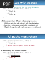 – Return values send information out from a method to its